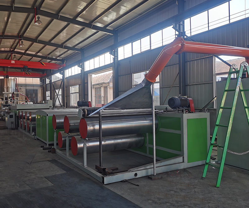 塑料平膜拉絲機組是在引進、吸收國外先進技術的基礎上,采用微機控製、變頻調速及可控矽直流調速等先進技術研製而成的。主要元器件采用國外優質產品;在擠出機螺杆料筒上加大長徑比,加大混煉段,並采用優質鋼材特殊加工而成;特別對拉絲機組換網係統,采用了國外先進的自動帶式換網結構;烘板改成了國外先進的拉伸熱風箱;從而使該機組的主要技術指標接近國際先進水平,具有速度快、產量高、能耗低、絲筒成形質量好等優點,整套機組製造工藝精良、結構緊湊、運行平穩、控製靈敏、造型美觀、操作方便、安全可靠。 本機組適用範圍廣,可適用於聚丙烯、高密度聚乙烯等各種扁絲的成型加工。